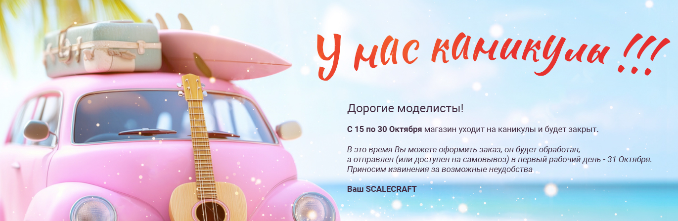 Магазин на канинкулах с 15 по 30 октября. Вы можете сделать заказ, он будет обработан, а отправка будет в первый рабочий день - 31 октября.