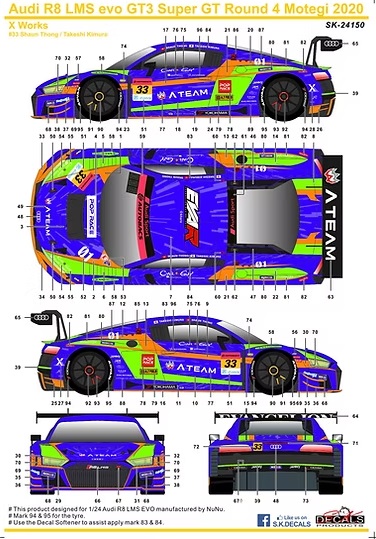 Audi R8 LMS Evo GT3 Super GT Round 4 Motegi 2020 X Works - декаль для модели NuNu