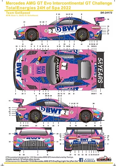 Mercedes-Benz AMG GT Evo Intercontinental GT Challenge TotalEnergies 24H of Spa 2022 - декаль на модель от Tamiya